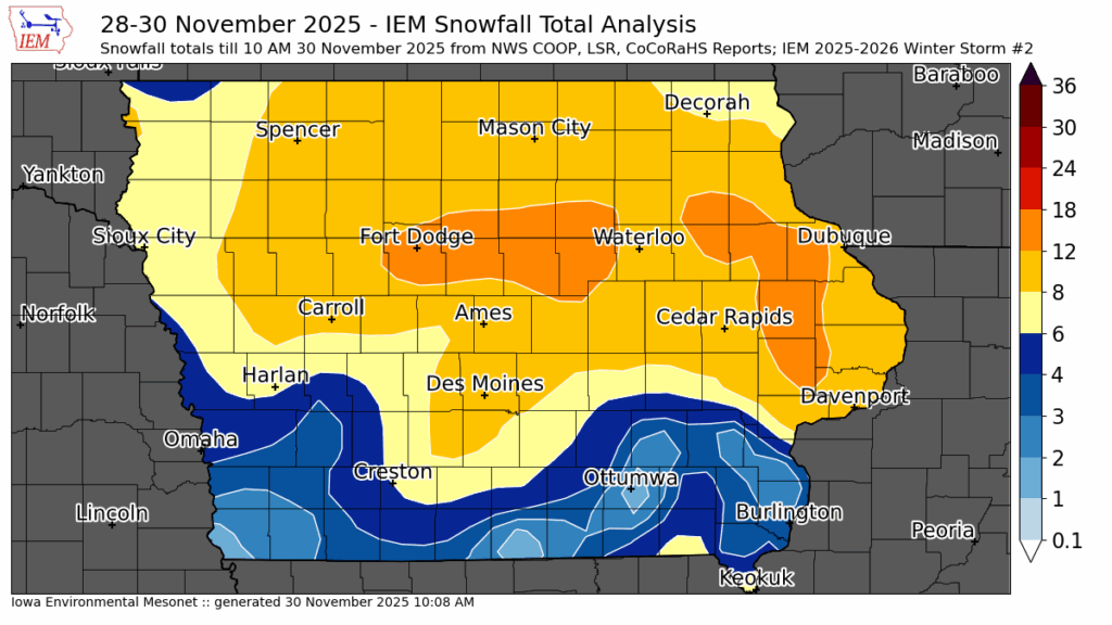 Post-Thanksgiving Winter Storm Drops 10–16 Inches Across Iowa